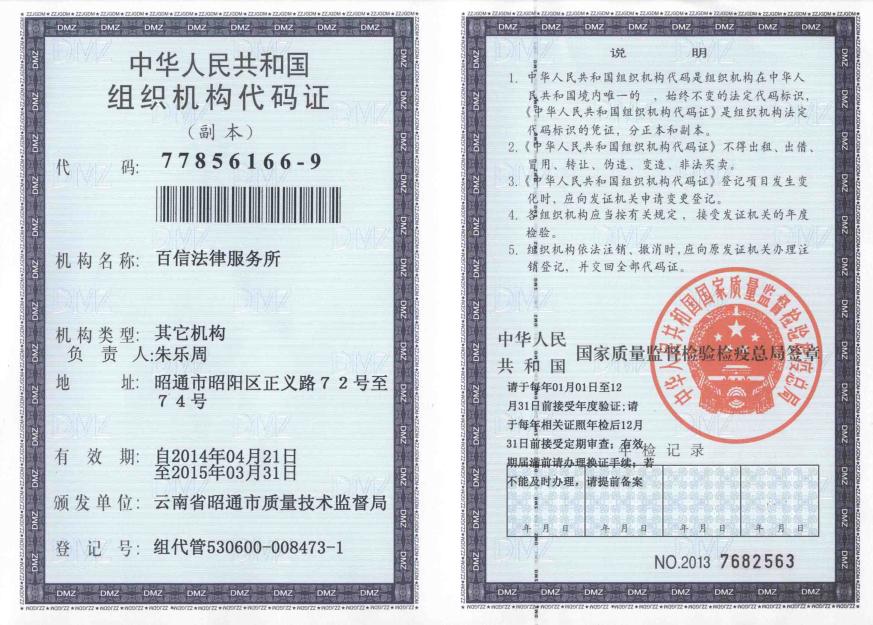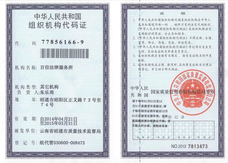 百信法律服務(wù)所組織機(jī)構(gòu)代碼